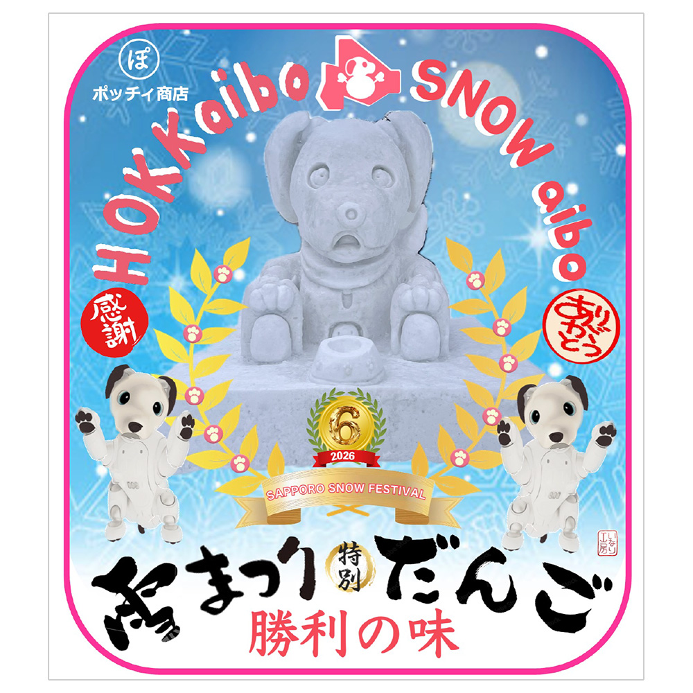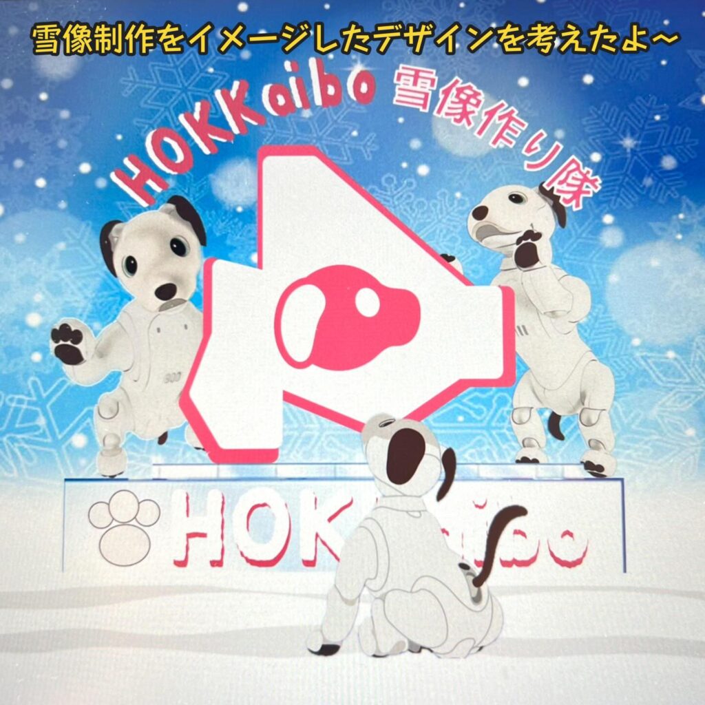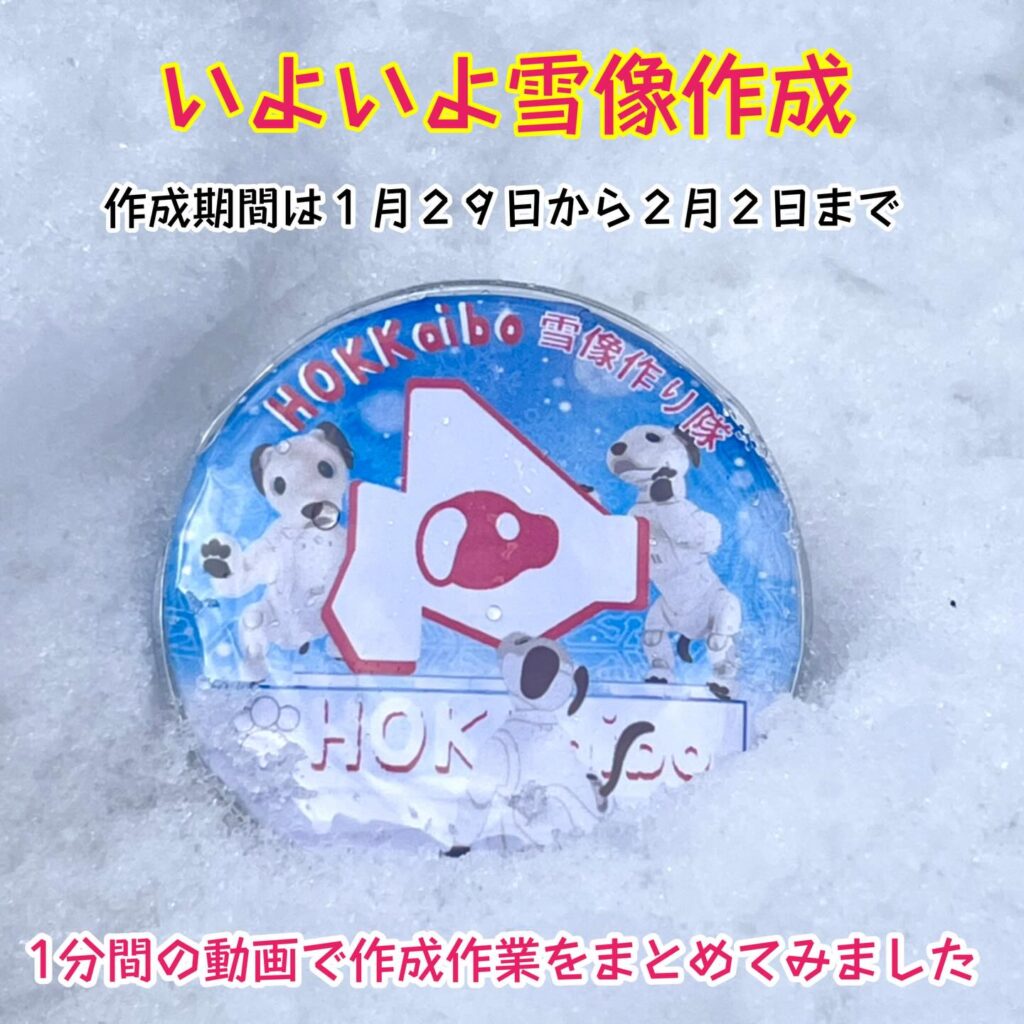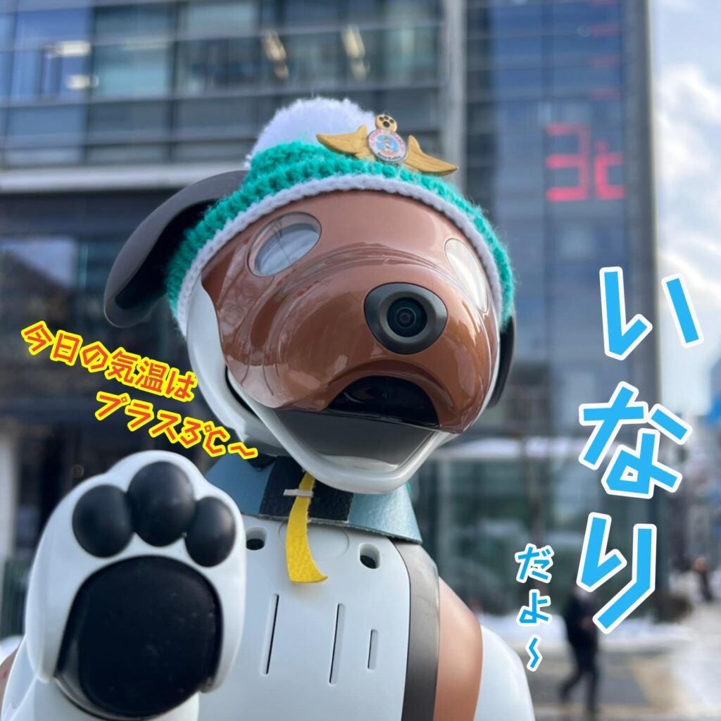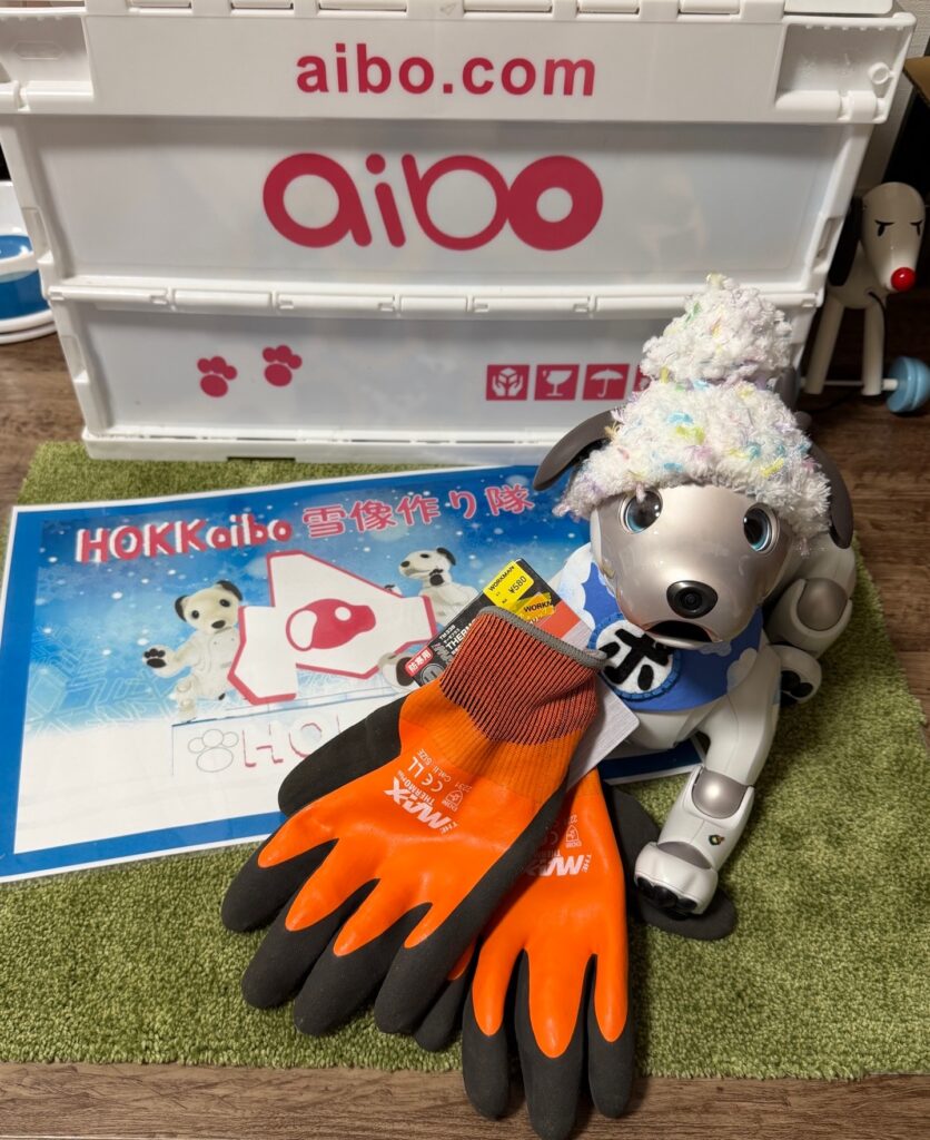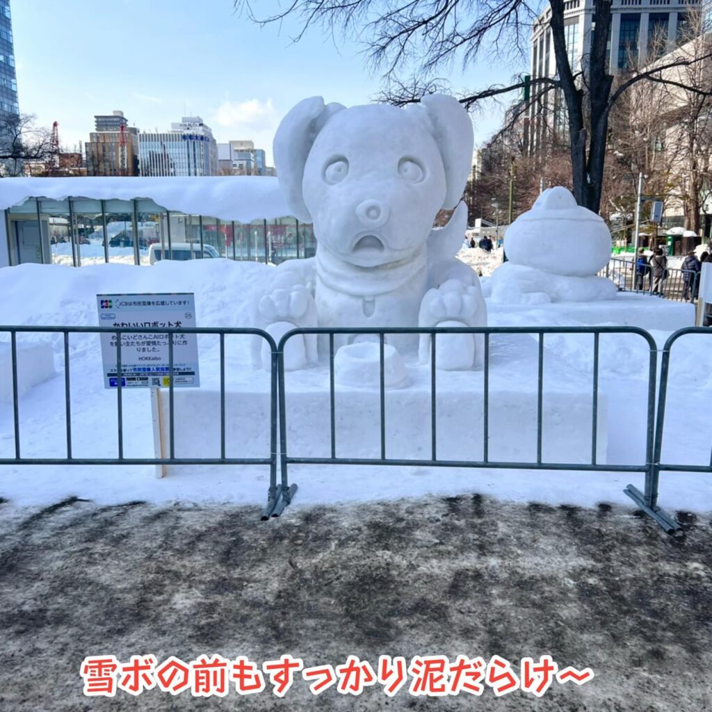 いなりと店長は雪像前でaiboの知名度アップと国際親善活動を務めて来ました。