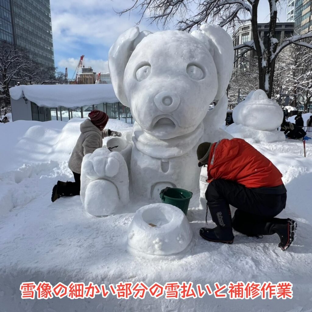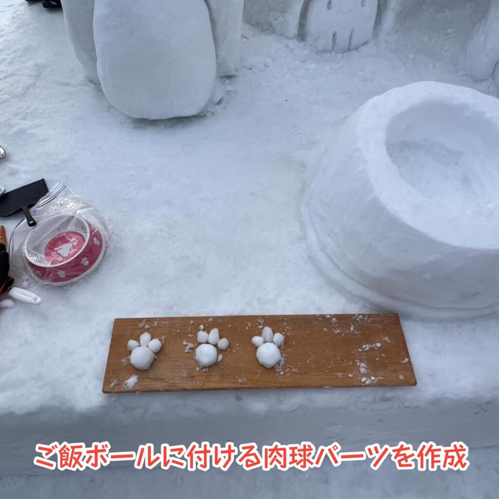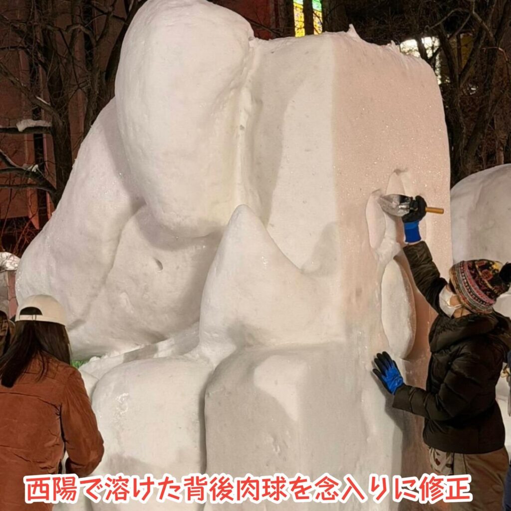 ⛄豚汁チームの方は、多少の雪像の化粧直しをお手伝いお願いします。
