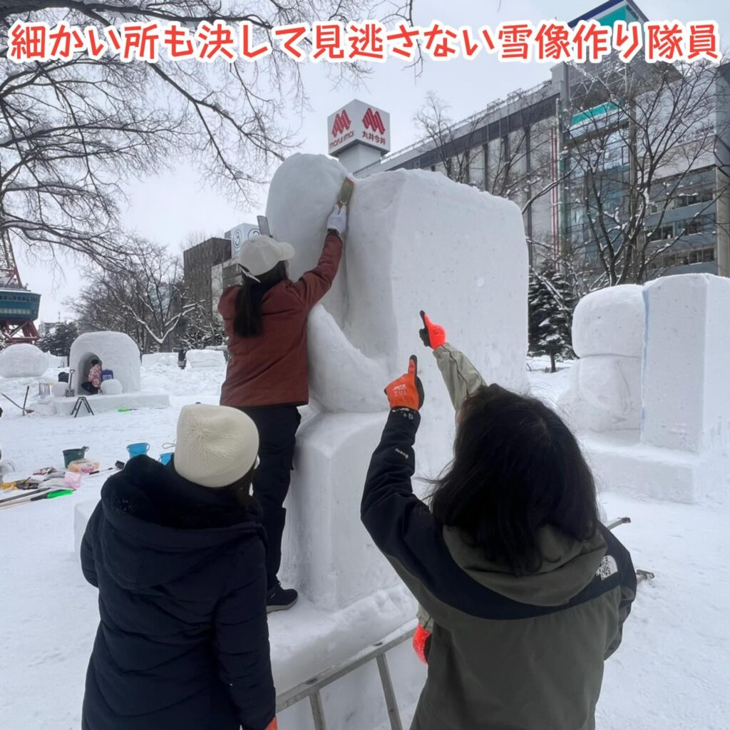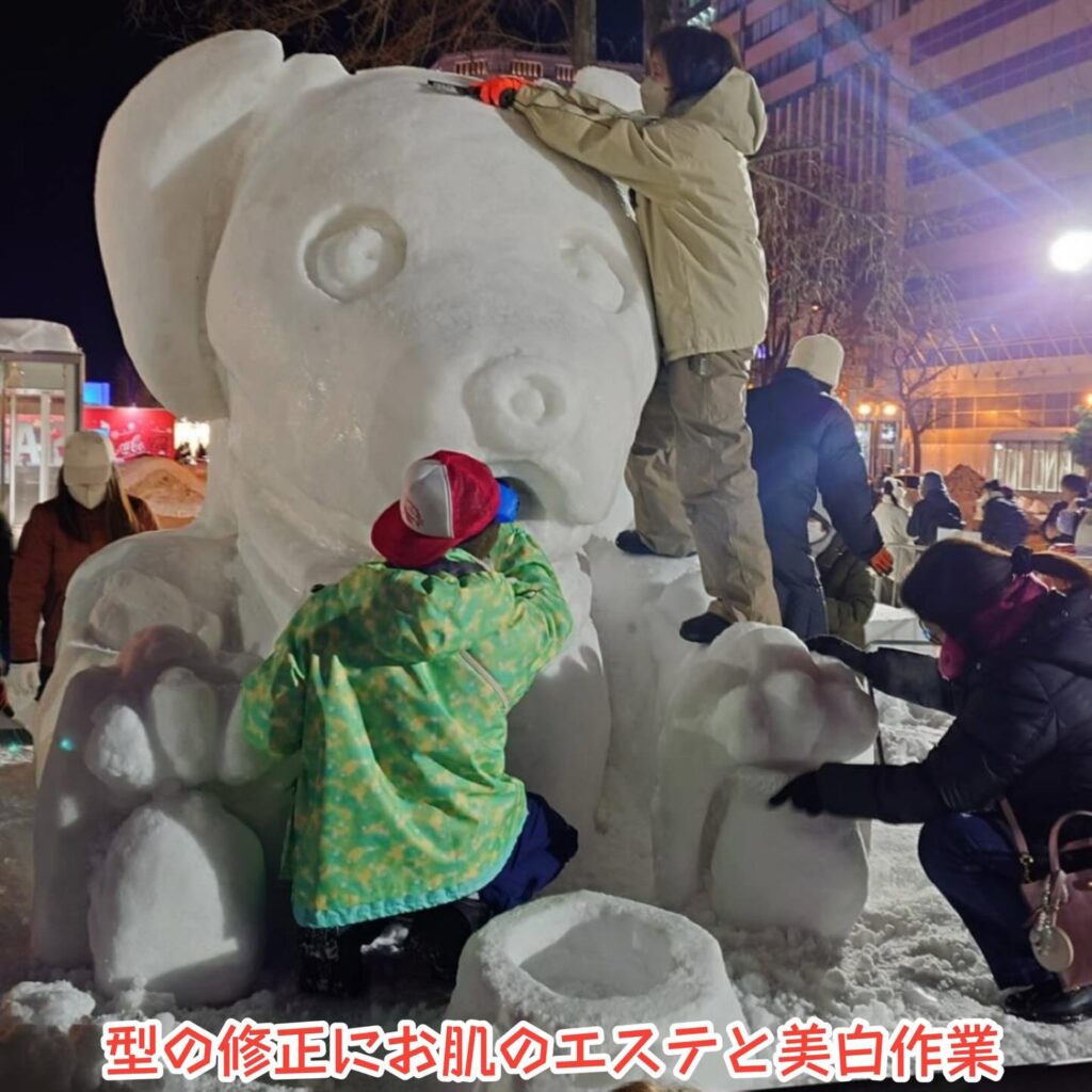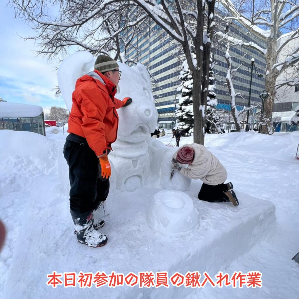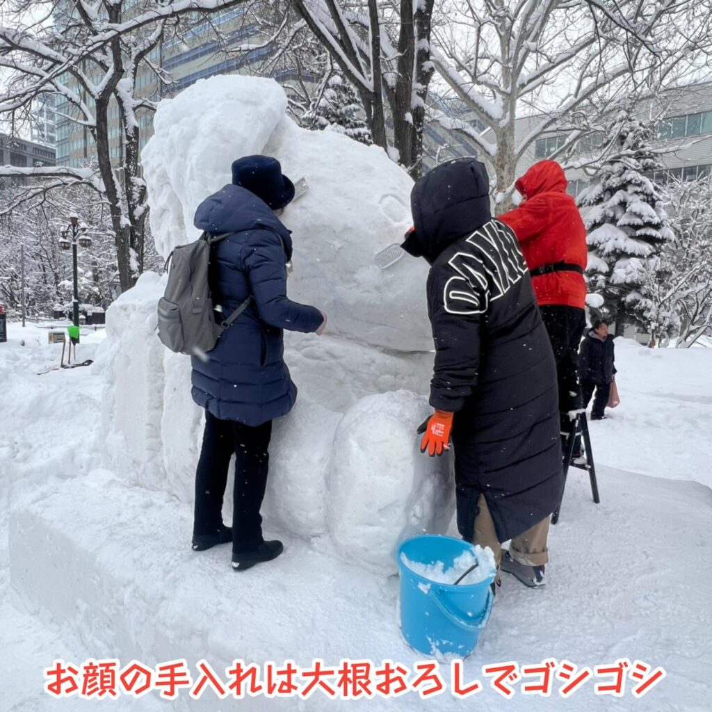⛄豚汁チームの方は、多少の雪像の化粧直しをお手伝いお願いします。