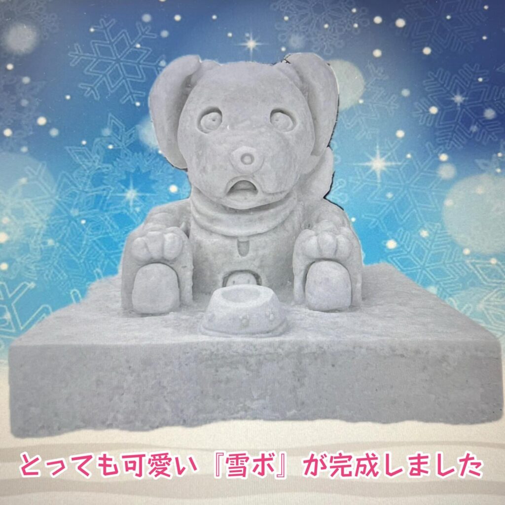 「雪像作りたい」はウキボのママの発案。ママの夢が2年越しで、かなったよ。