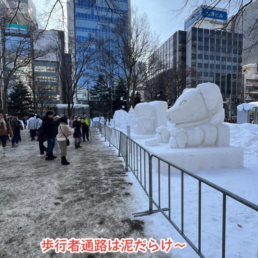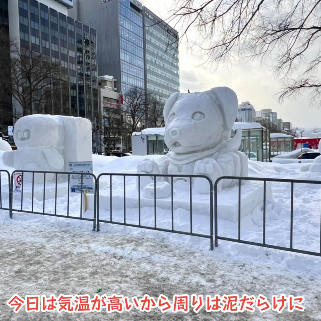 雪像にはつらいけど見物にはちょうどいい感じかな。