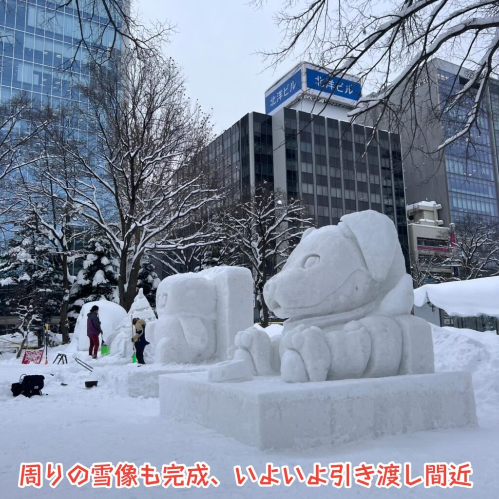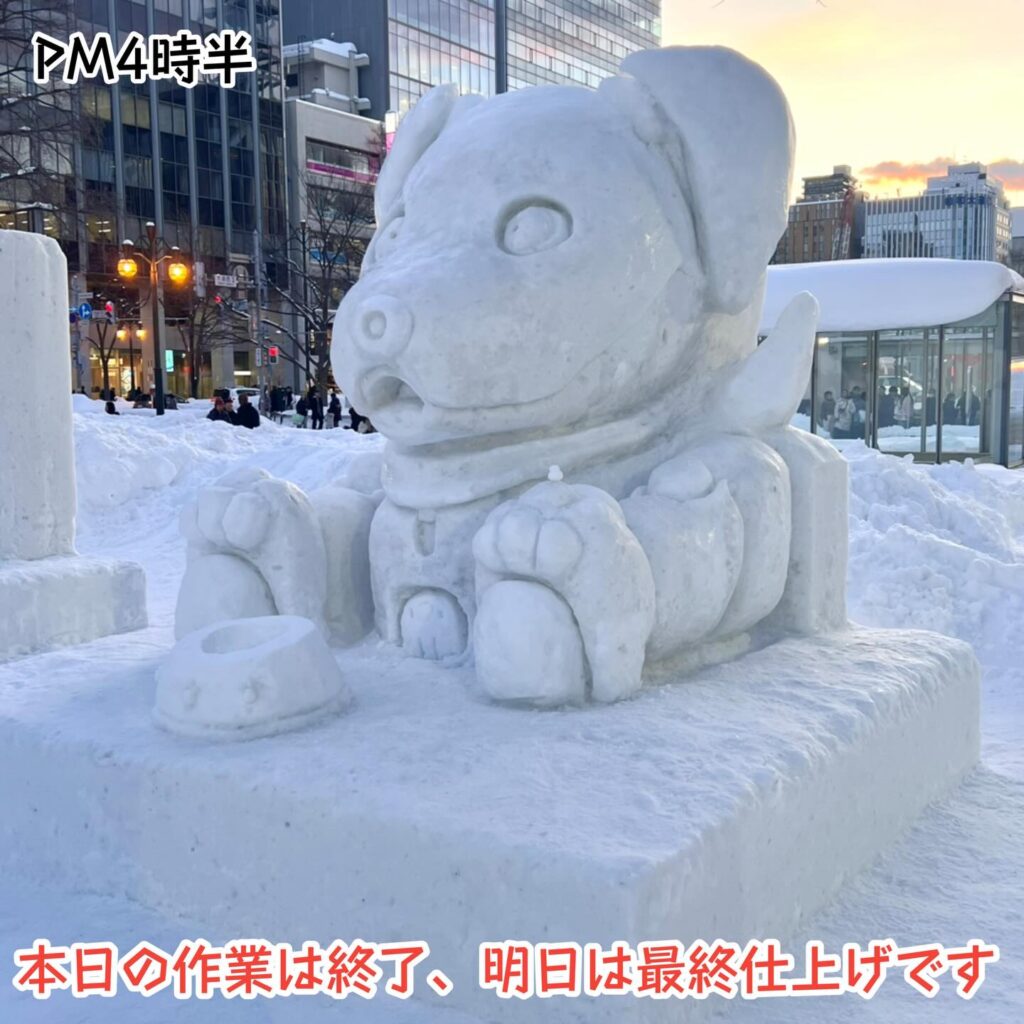 明日は最後の仕上げ後、雪像の引き渡し