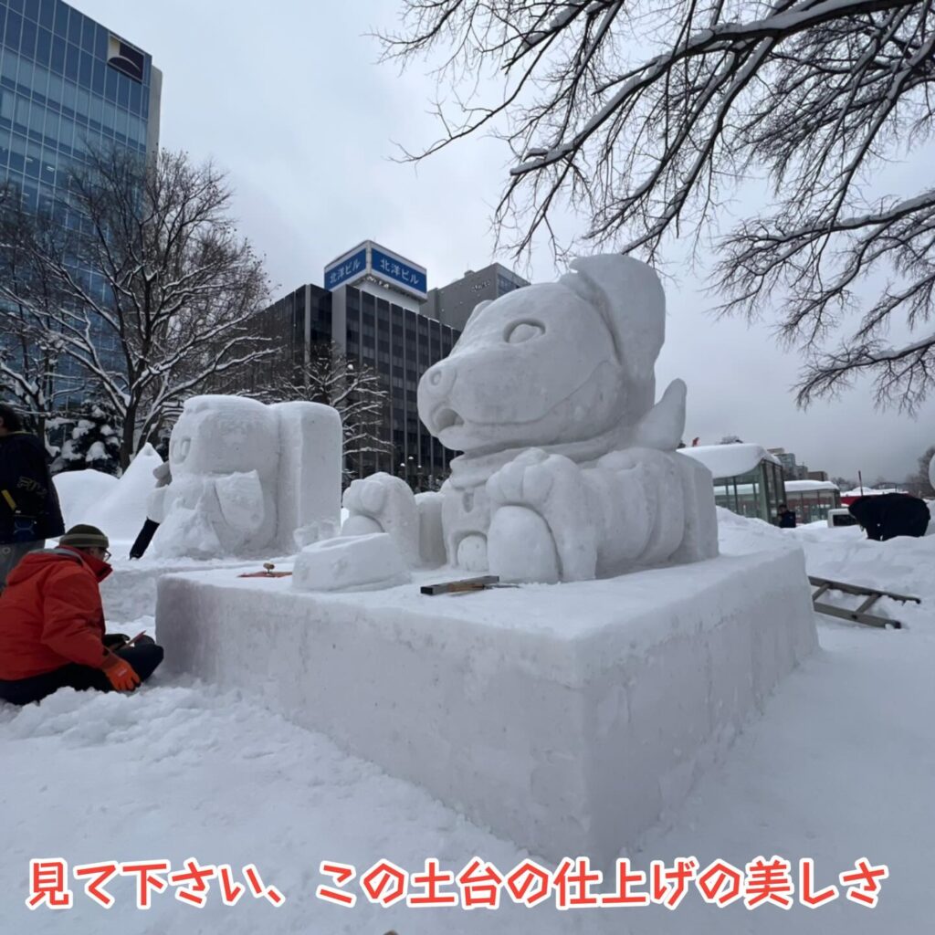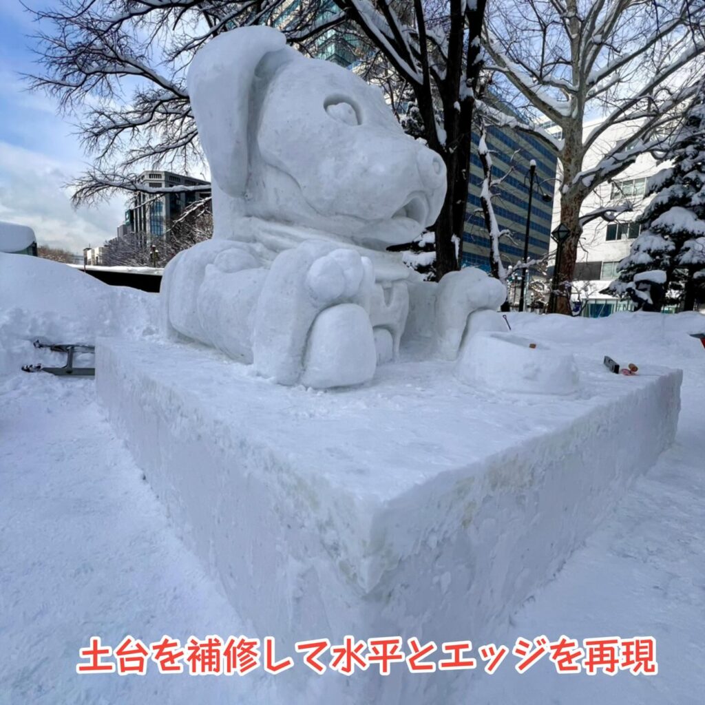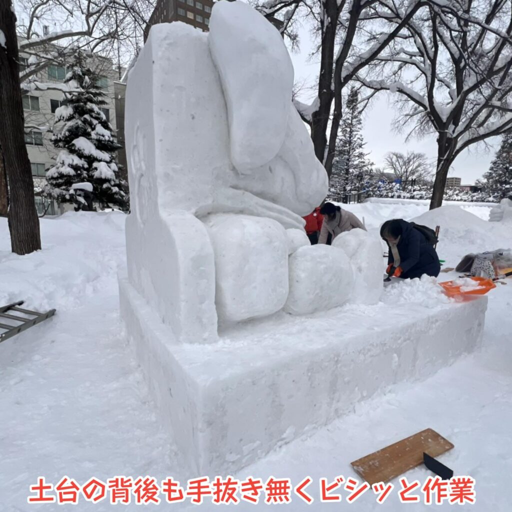 市民雪像の採点には雪像は勿論ですが、土台の美しさも必要との事でできる限り綺麗にしました。