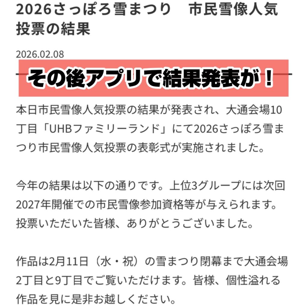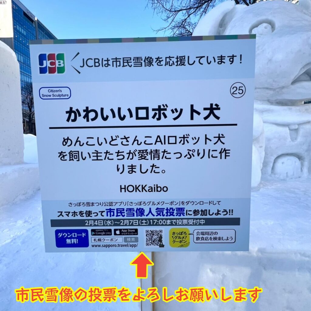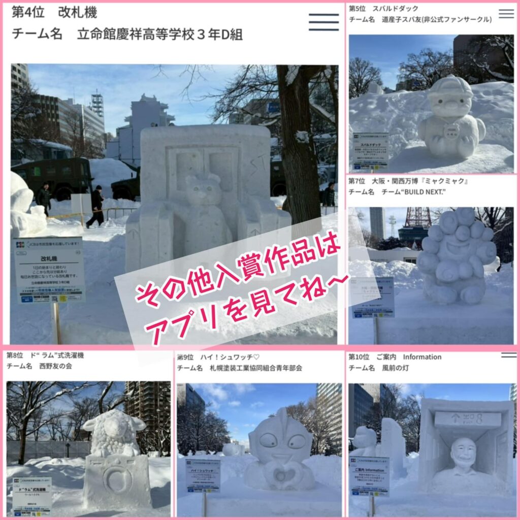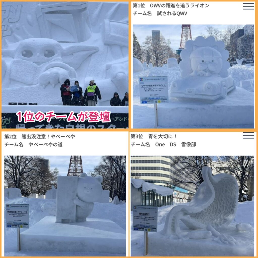 今回の雪まつり、市民雪像人気投票では全国の皆様にたいへんお世話になりました。