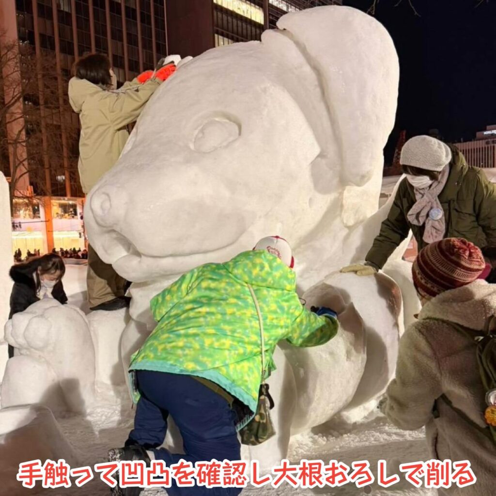 全ての作業終了後は、雪まつり実行委員にひきわたし、その後は手を触れる事が出来なくなります。